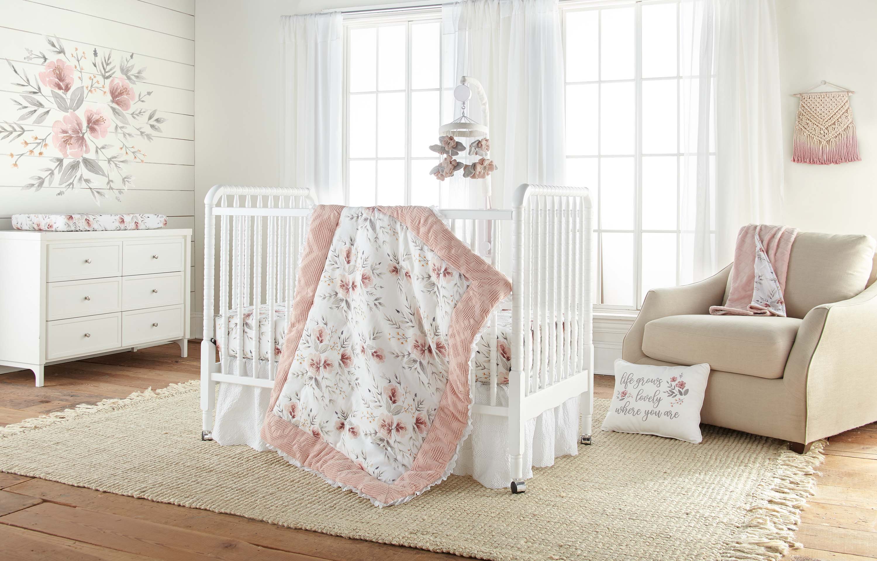Choosing a floral theme can be timeless and versatile. It can be used from infancy through childhood. Just changing out the size of your bedding or updating a few pieces keeps your room fresh as your child grows.
