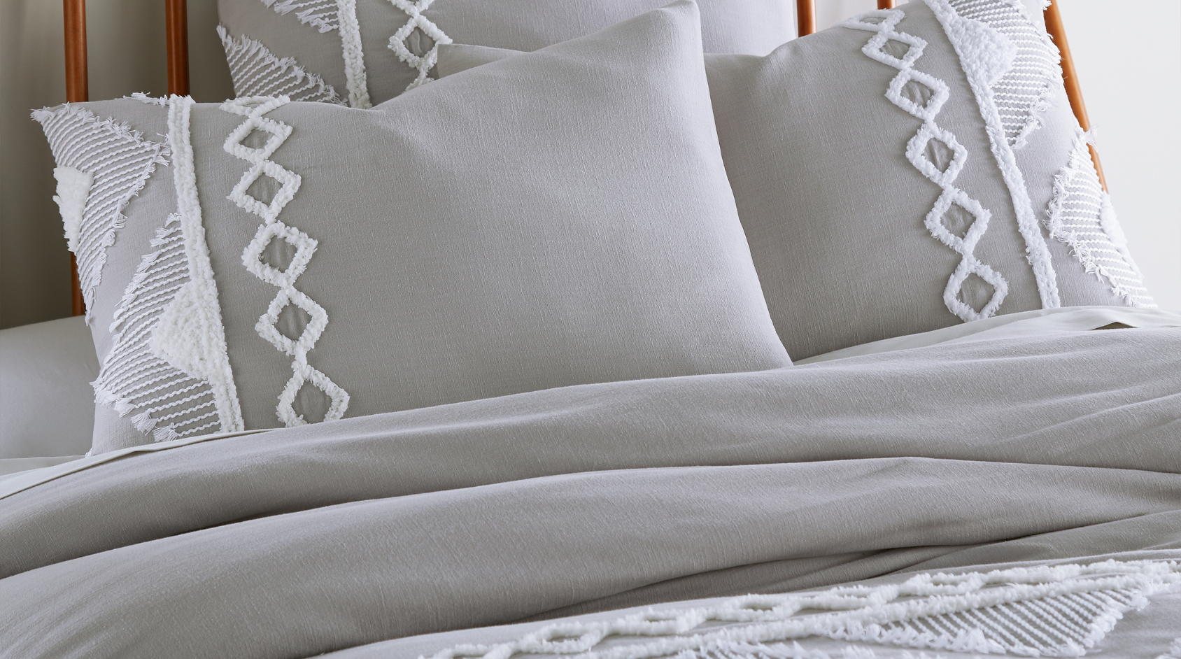 Textured bedding can make your home feel even more welcoming. Layer some linen on crisp cotton for an understated look, or pick a comforter or duvet cover with stitching detail, tufting or dimensions for something more textured and interesting. Whether you pick a cloud-like comforter, a duvet cover or a quilt, adding texture adds a level of interest and dimension to your bedroom.