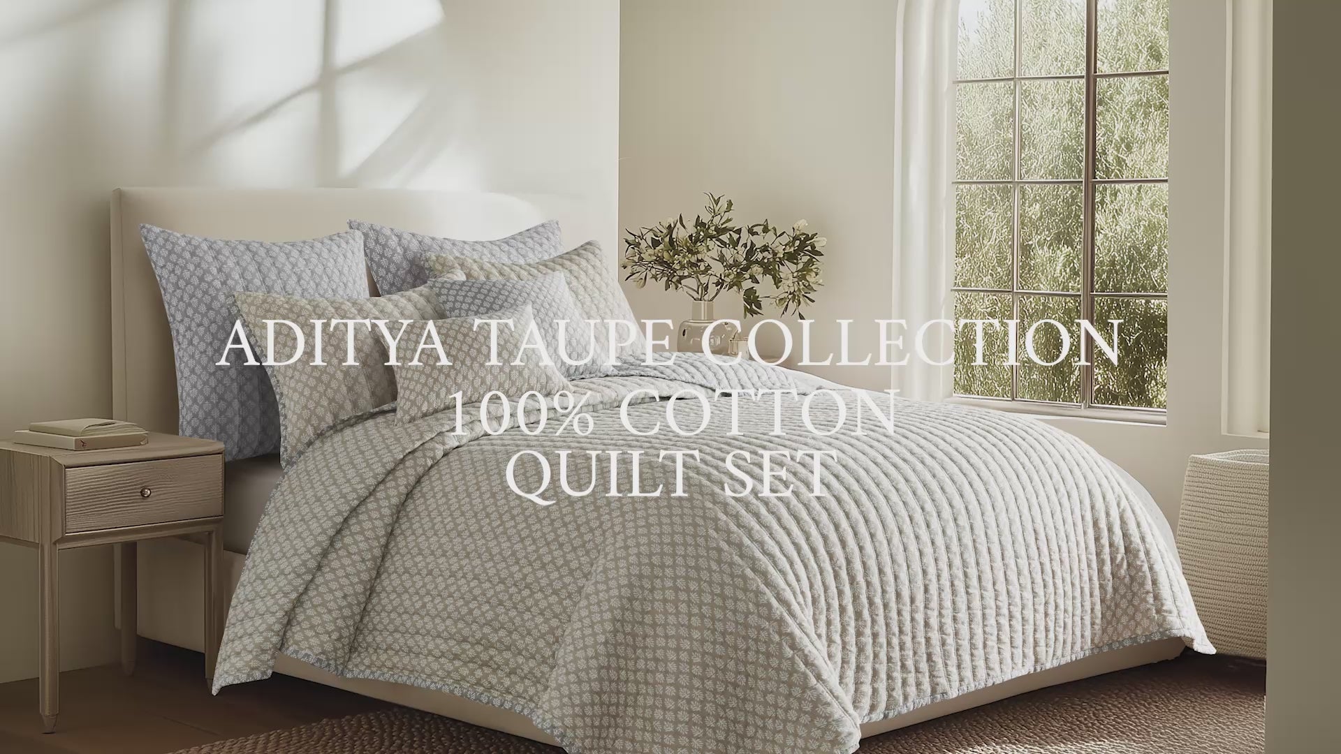 The Aditya Reversible Quilt Set by Levtex Home is inspired by antique artistic tile. Offered in two color palettes, blue, navy with white, and taupe, grey with white; this design will immediately transform your bedroom. Each quilt selection is uniquely designed, offered in various color pallets to choose from: