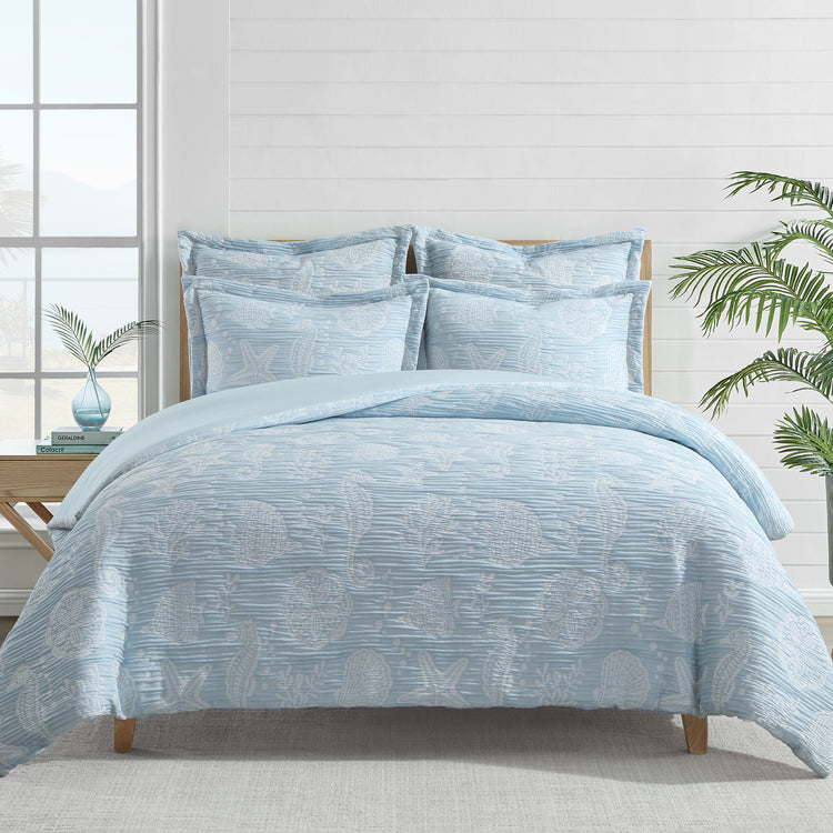 The Seaside Charm Duvet Cover Set by Levtex Home is serene and versatile. Offered in blue with white, this design will immediately transform your bedroom. Made with a soft and luxurious polyester, this duvet cover set features an array of sealife and sea plants in white on a blue ground. It has marine life on the front and a solid blue on the reverse. It closes with easy to use, durable buttons. Insert not included. The Seaside Charm Duvet Cover Set is machine washable. Enjoy this for years to come!