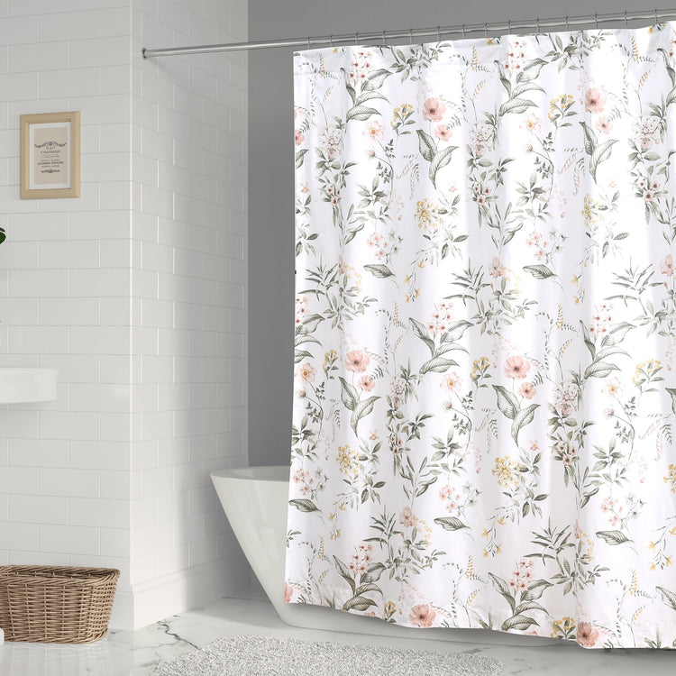 • The Viviana shower curtain complements the Levtex Home Viviana collection. This is the perfect accessory for any bathroom. Sized at 72x72in., this shower curtain features an intricately detailed botanical floral pattern. Made from 100% cotton, the Viviana decorative shower curtain is easy to care for. Comes with buttonholes ready for installation. Hooks and liner are not included.